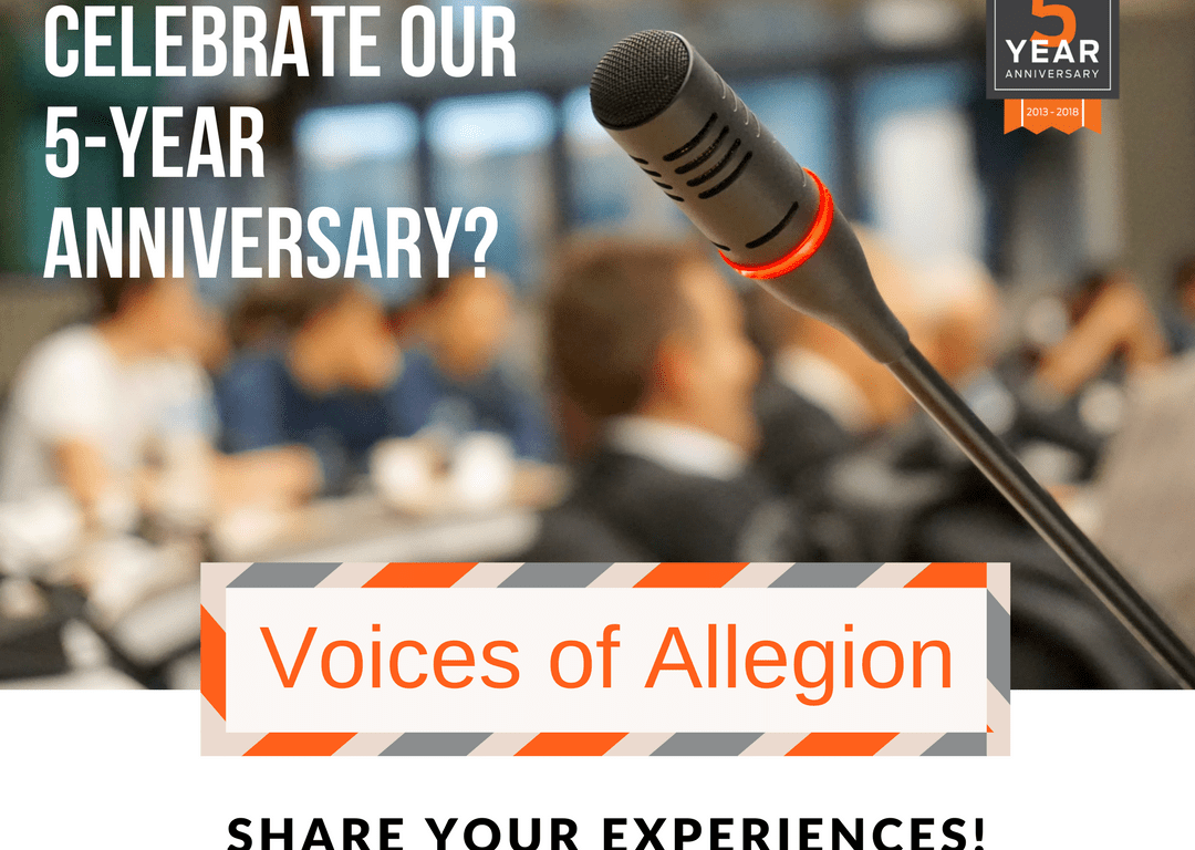 This audio file and poster introduced a new initiative to celebrate the five-year anniversary of the company under this new name, as well as the impact that preceding company brands have had over 100 years in North America. I used our monthly newsletter to invite people to share stories of the company’s growth, development and impact. This initiative was eventually adopted by the Corporate Communications Team as the “Allegion Voices” project, and shared with employees across the globe.