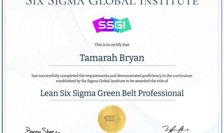 This past year has offered me an opportunity to expand my knowledge and leverage my skills in new industries. I recently acquired a certification in the Lean Six Sigma Green Belt. Continue reading Lean Six Sigma Green Belt Certification